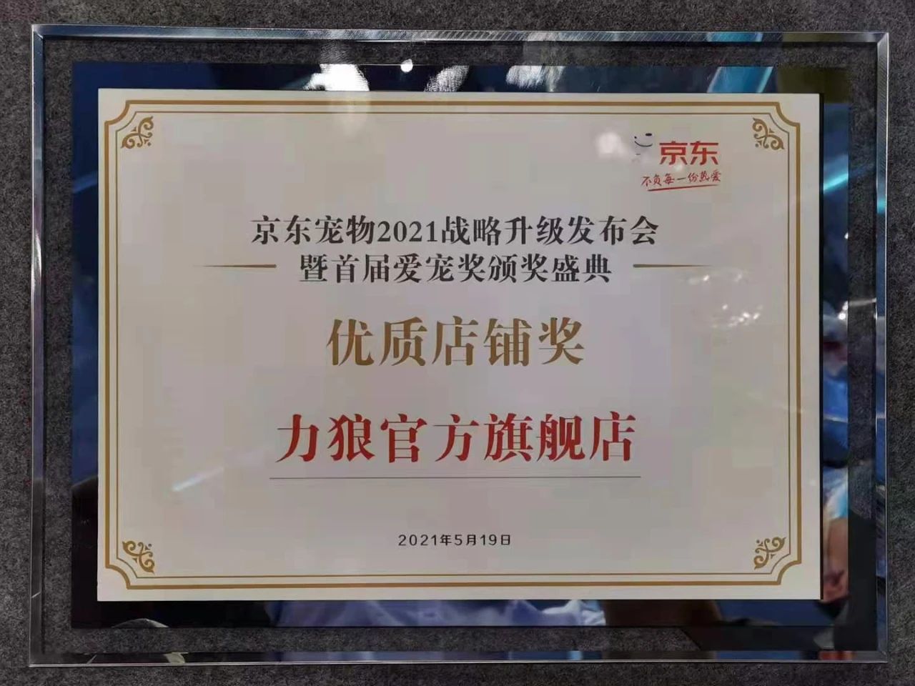 展會同期,在京東寵物2021年戰(zhàn)略升級發(fā)布會暨首屆“愛寵獎”頒獎盛典上,我公司力狼官方旗艦店榮獲“優(yōu)質店鋪獎”,再次獲得了行業(yè)同仁的認可。