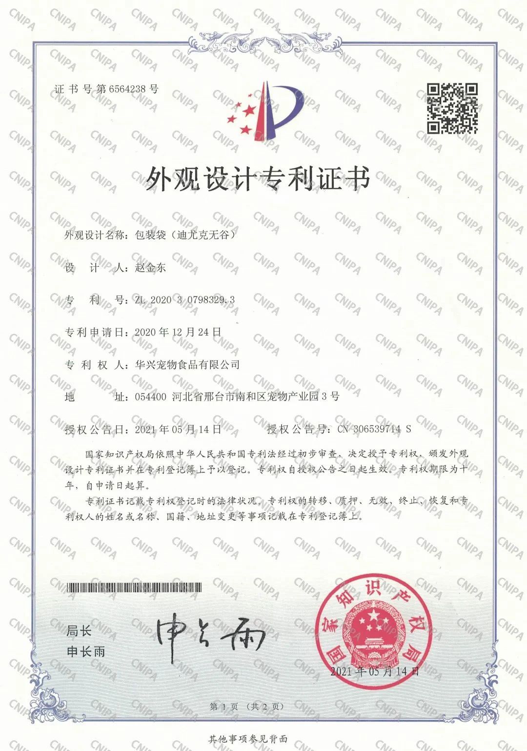 近日,國家知識產權局依照中華人民共和國專利法經過初步審查,授予迪尤克無谷包裝袋外觀設計專利證書,專利號:ZL 2020 3 0798329.3,并在專利登記薄予以登記。