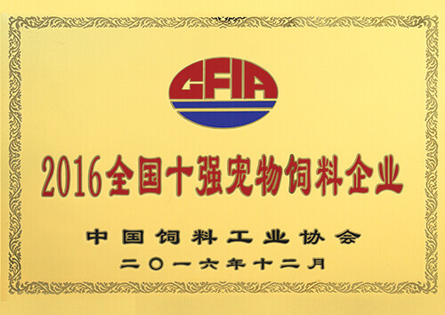 公司被評為“2016全國十強飼料企業”稱號
